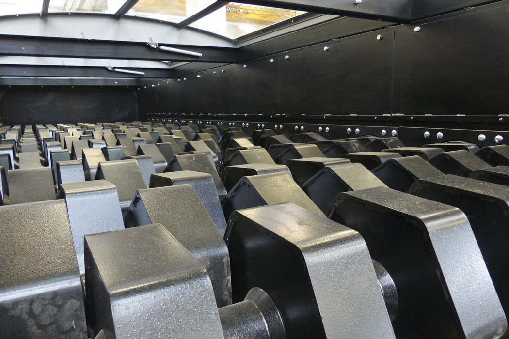 La tecnología CAD garantiza un cribado perfecto gracias a los conos metálicos instalados en los ejes, que desvían los trozos largos hacia la parte recortada del disco siguiente, evitando que se caigan en la fracción cribada (parte inferior de la criba).