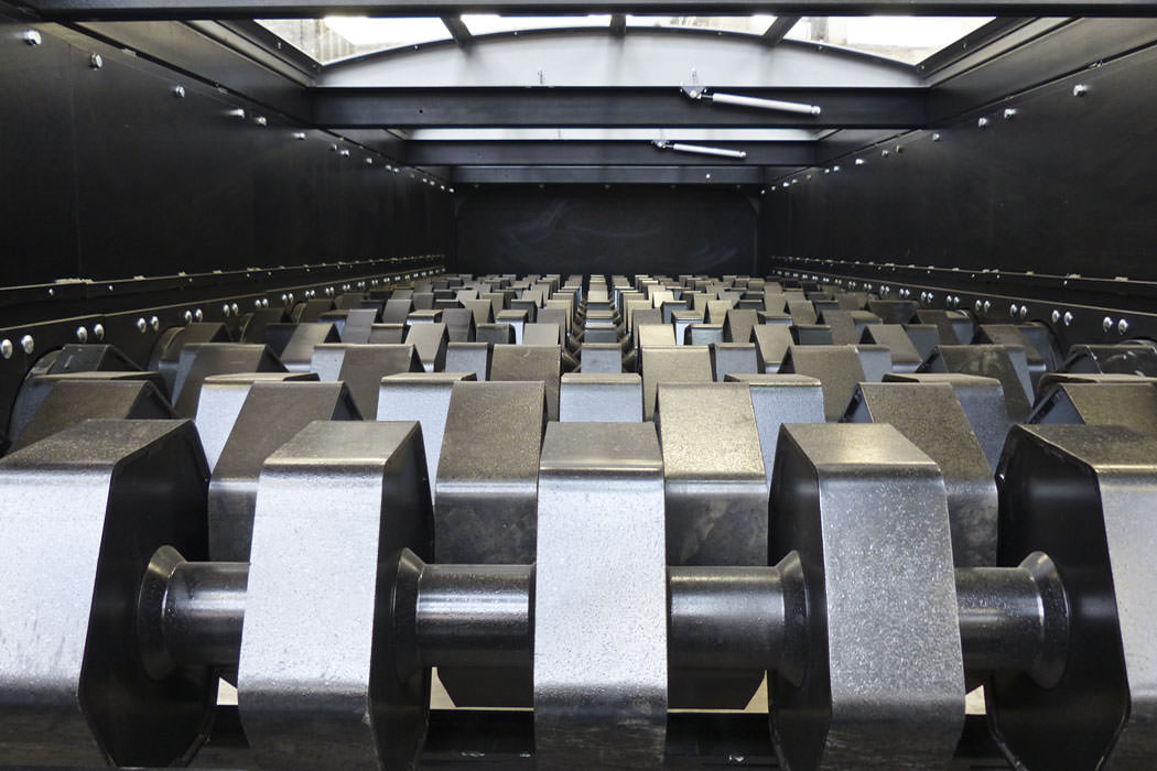 La distancia entre los discos establece el tamaño del cribado. Un mayor refinamiento de este tamaño se obtiene cambiando la velocidad de los ejes, obtenido gracias al accionamiento con inversor instalado en el cuadro de mando.